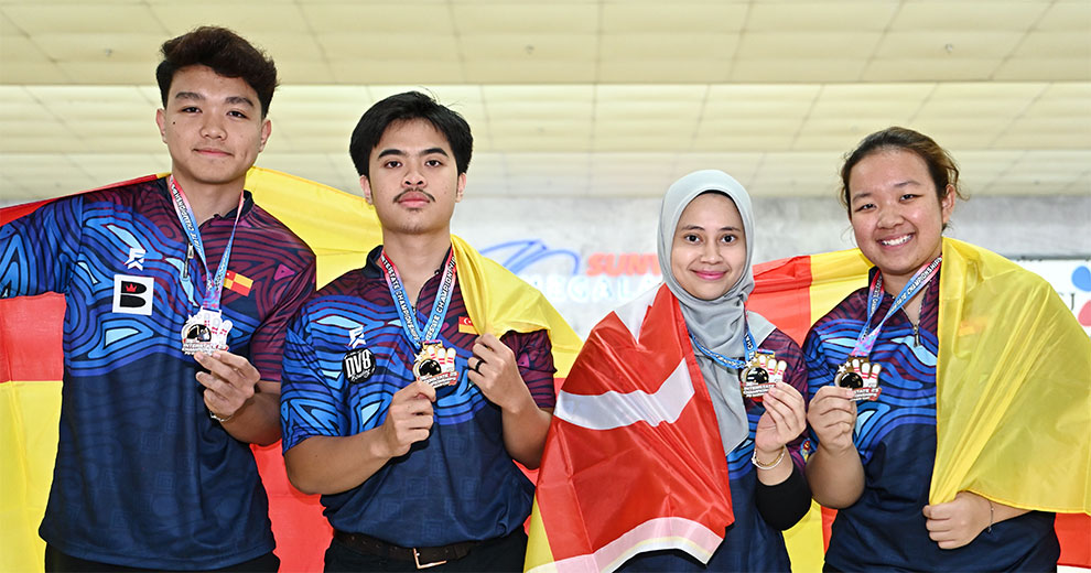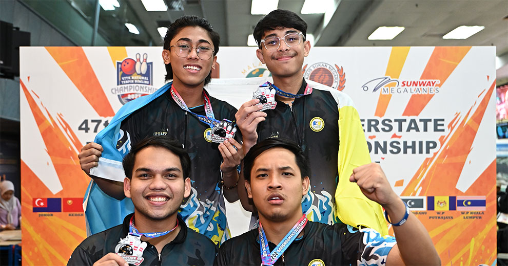 30th September, Petaling Jaya: Shaqeem Izwan Teh, Ahmad Azriq, Muhammad Amin Syimir and Muhammad Hafiz successfully defended the Men's Team title at the 36th Interstate Tenpin Bowling Championships 2025 while Sabah picked up their fourth gold winning the Women's Team Gold.