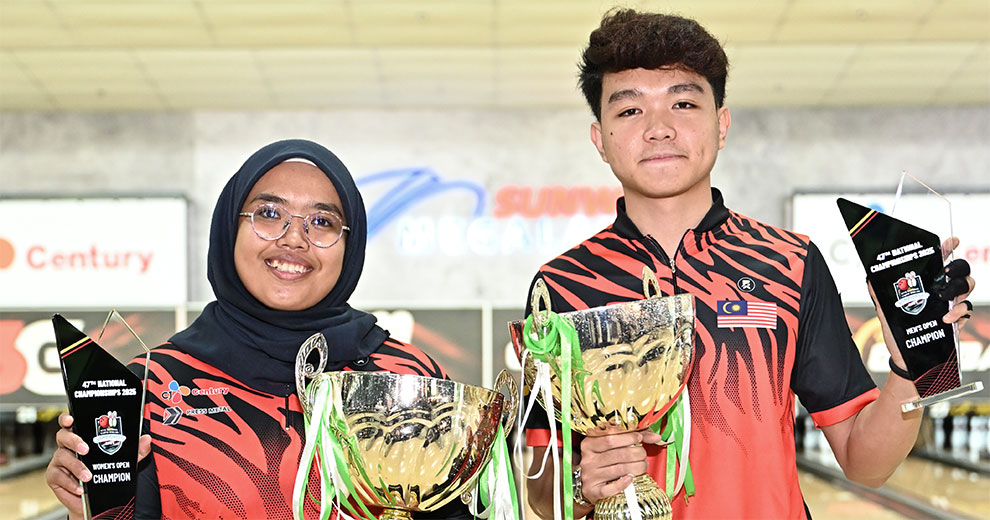 5th October, Petaling Jaya: Second-seed, Muhammad Aiman Syahin of Selangor narrowly defeated top-seed, Megat Zaqrul Haiqal of Pulau Pinang on the fifth one-ball roll-off tie-breaker to win the Men's Open Masters title of the 47th Malaysian National Tenpin Bowling Championships 2025 while Faten Najihah Binti Ahmad Faik of Pahang triumphed in the Women's Open division.