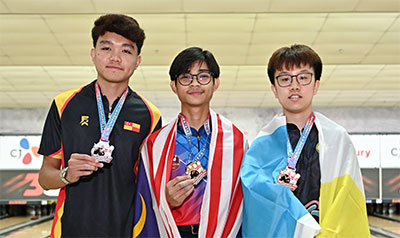 Muhammad Aiman Farhan Bin Nor Fuzi of WP Kuala Lumpur got off the mark with a brilliant 237 but only to lead Muahammad Danish Bin Mahmud by one pin. Muhammad Eikhsan of Puala Pinang was third with 233. 2025 Asian Youth Doubles gold medalist, Muhammad Aiman Syahin Bin Sulaiman stayed close with 226 in fourth.